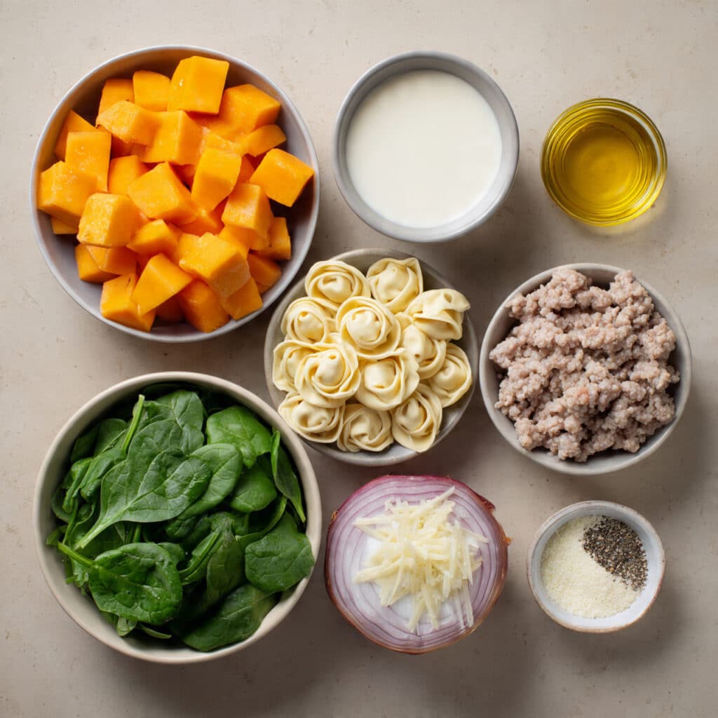 A cozy and comforting butternut squash sausage soup with cheese tortellini, spinach, and creamy broth. Perfect for fall evenings and hearty meals.