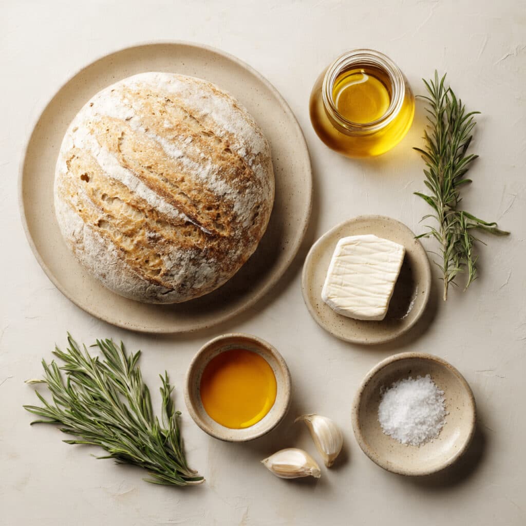In a small bowl, mix olive oil, minced garlic, chopped rosemary, and a pinch of salt. Let it sit to infuse while you prep the bread. -