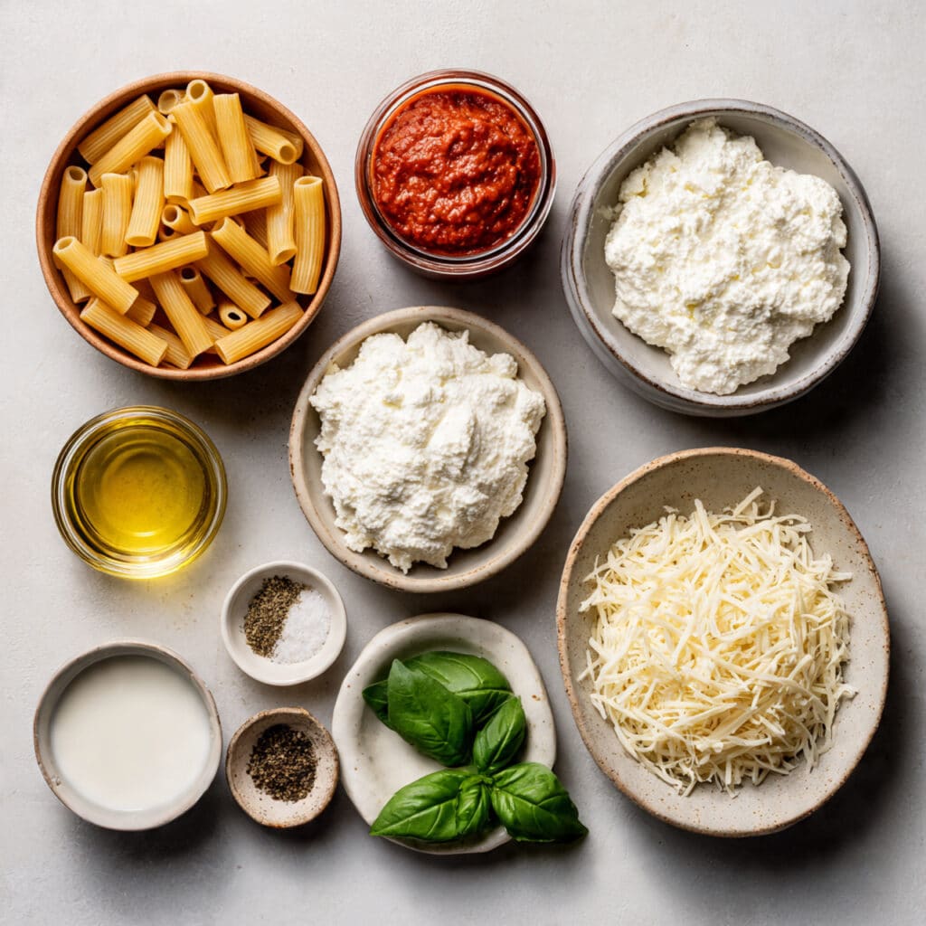 - Ziti pasta: 450 g, provides the hearty structure that holds the sauce and cheese.