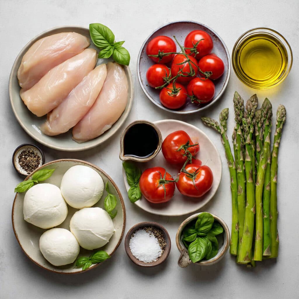 Keywords: balsamic chicken, caprese chicken, chicken with asparagus, easy chicken dinner, healthy chicken recipe