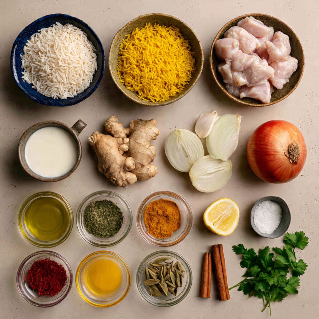 You can marinate the chicken up to 24 hours in advance and keep it refrigerated. Leftover biryani stores well in an airtight container for up to 3 days. Reheat gently with a splash of water to restore moisture. It can also be frozen for up to 2 months and thawed overnight in the fridge before reheating.