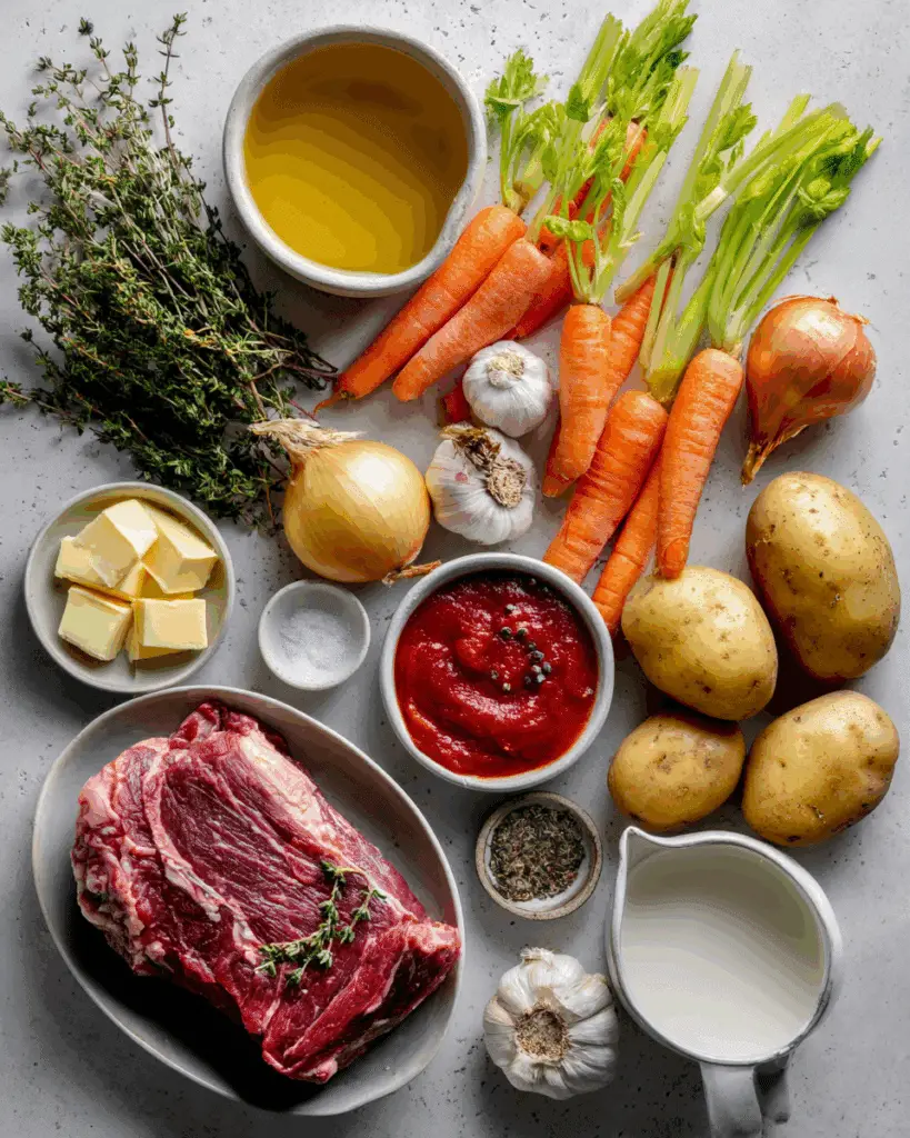 2. Combine Ingredients: Season the chuck roast generously with salt and pepper. Heat olive oil in your pot over medium-high heat and sear the roast on all sides until browned. Remove and set aside. Add onions, garlic, carrots, and celery. Cook until softened, about 6 minutes. Stir in tomato paste.