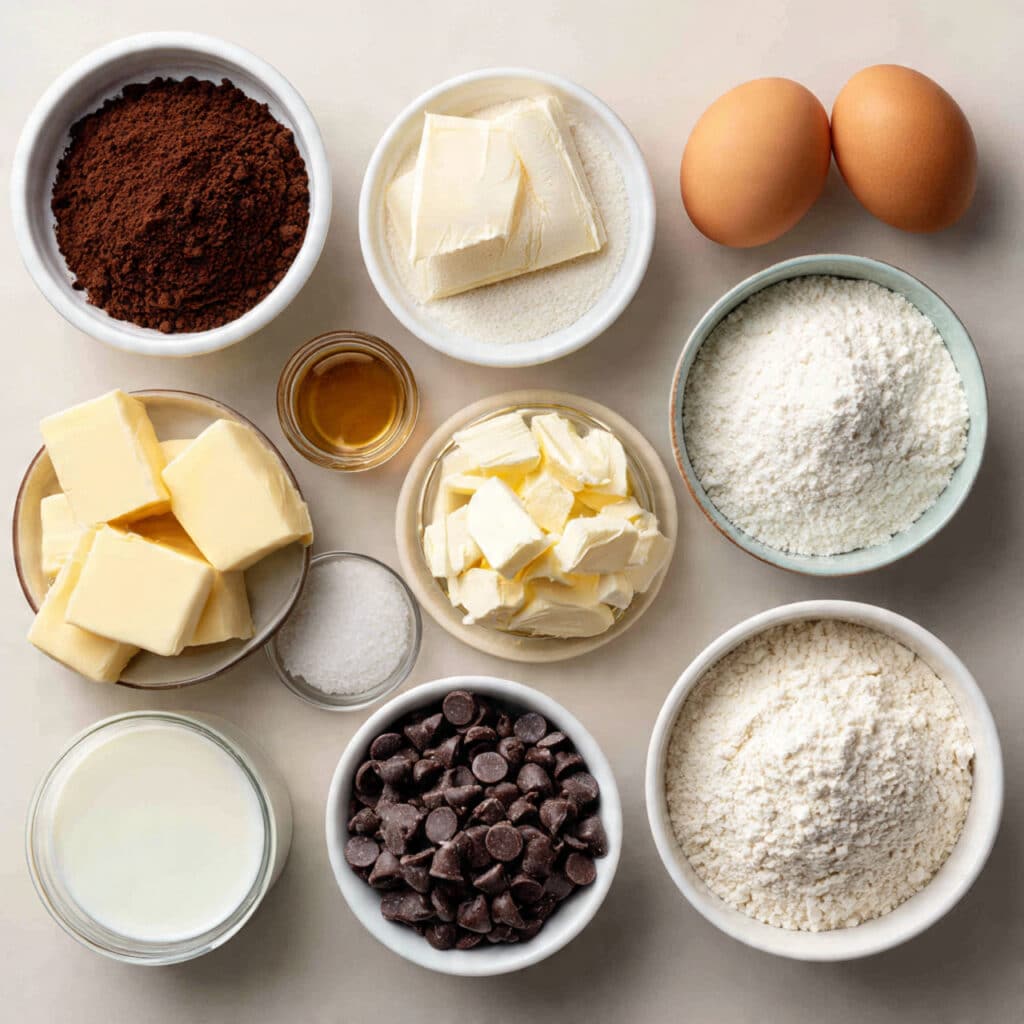- Cocoa Powder: ⅓ cup unsweetened — for that bold chocolate punch.