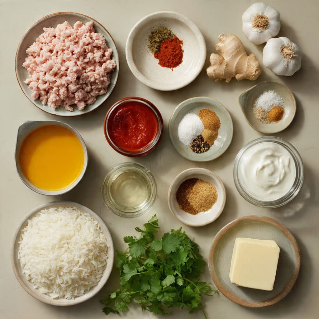 In a mixing bowl, combine ground chicken, yogurt, half the minced garlic and ginger, salt, pepper, and a pinch of cumin. Mix gently with your hands and form into meatballs. - Prepare Your Cooking Vessel: