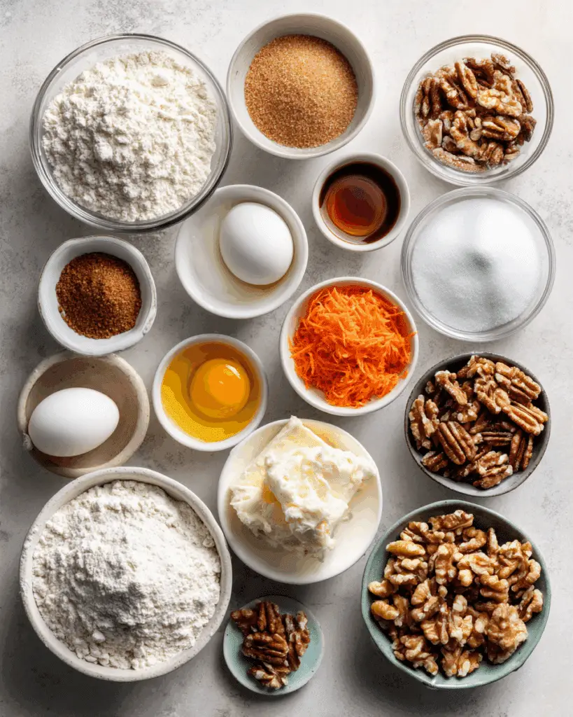 Carrots: Freshly grated carrots bring essential moisture, color, and sweetness. Their natural sugars caramelize slightly during baking, adding depth.