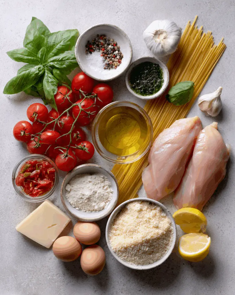 Ingredients in Cherry Tomato Spaghetti with Fried Chicken Cutlet