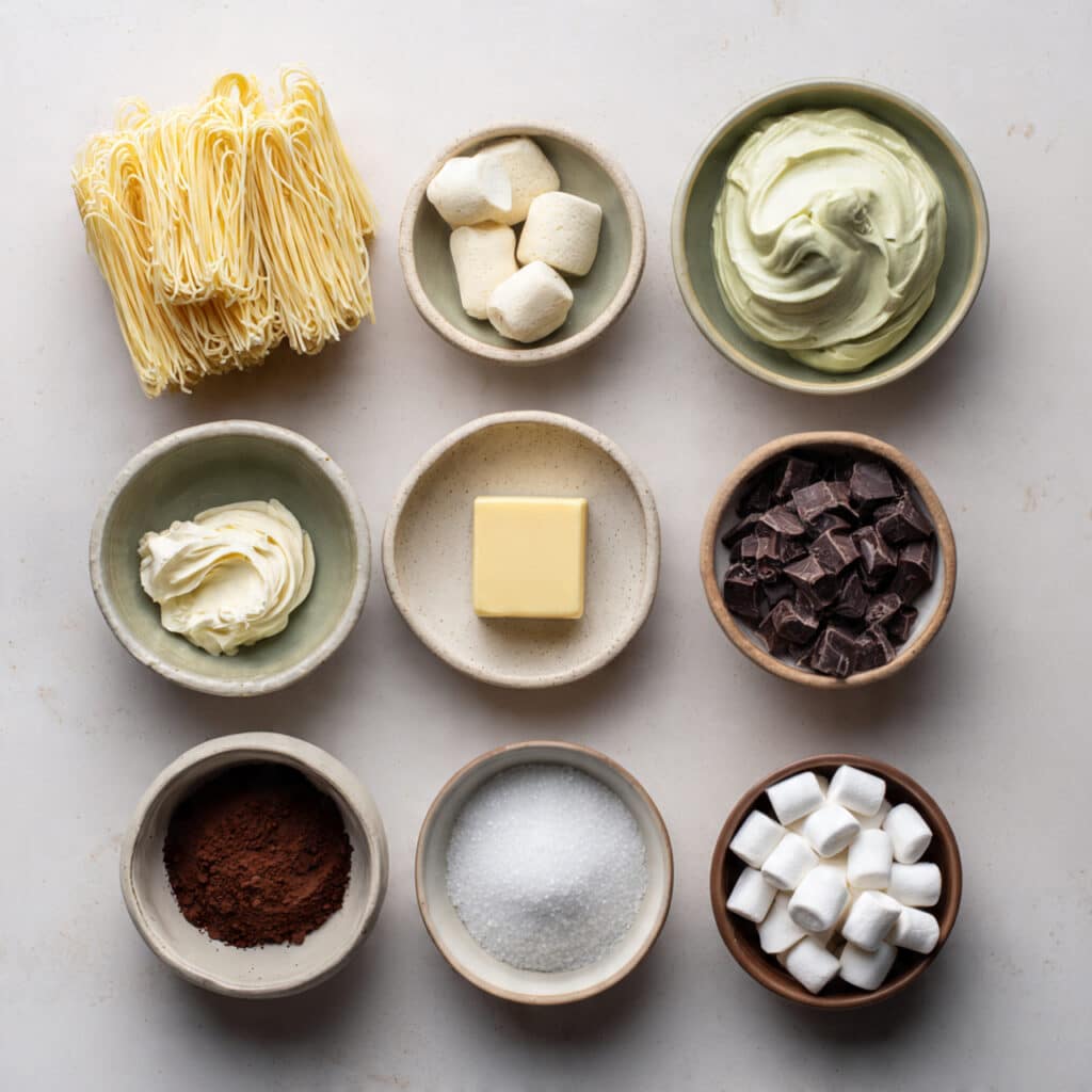 - Mini marshmallows: 200 grams, about 4 packed cups. These melt into the stretchy base that gives the shell its mochi-like chew.