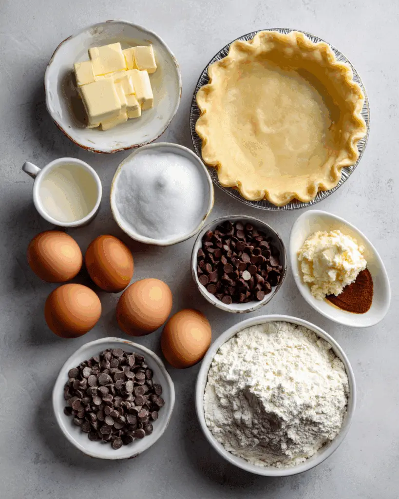 This pie hits all the right notes — crispy on the outside, soft and chewy in the middle, and filled with melted chocolate that stretches as you pull your fork away. The pie crust adds a delicate crunch that contrasts beautifully with the gooey filling, while the brown sugar and vanilla create a warm, caramel-kissed depth.