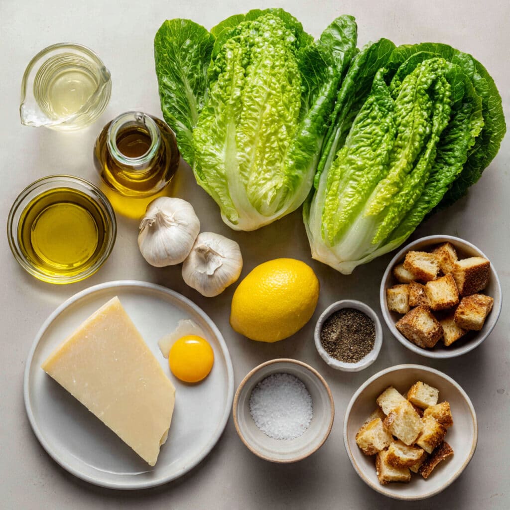 A crisp, creamy, and savory Caesar salad made from scratch with crunchy romaine, homemade croutons, and a tangy parmesan-rich dressing. Perfect as a side or a light main.
