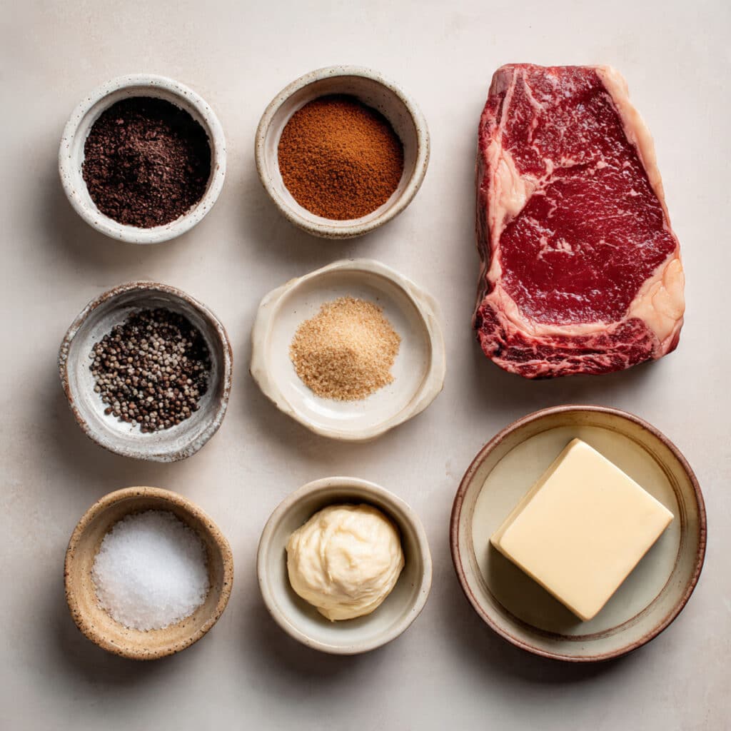 - Combine Ingredients: In a bowl, mix ground coffee, brown sugar, smoked paprika, garlic powder, salt, and black pepper. In another bowl, mix softened butter with white miso paste until smooth.