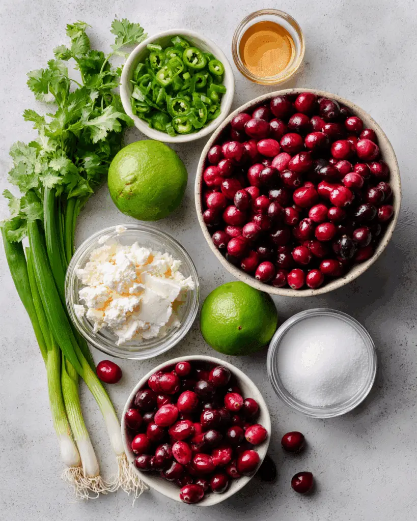 - In a food processor, pulse cranberries, jalapeños, green onions, cilantro, sugar, lime juice, and salt until finely chopped and well combined.
