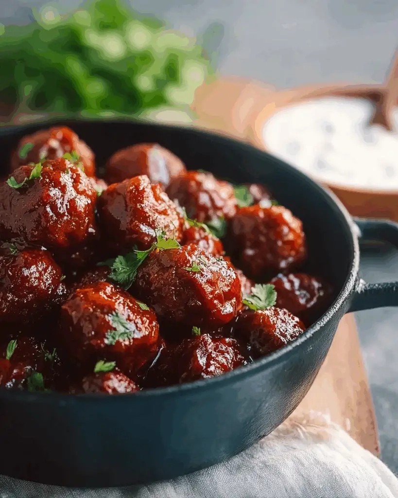 7. Serve and Enjoy: Arrange glazed meatballs on a platter with a side of the creamy dip for dipping delight.
