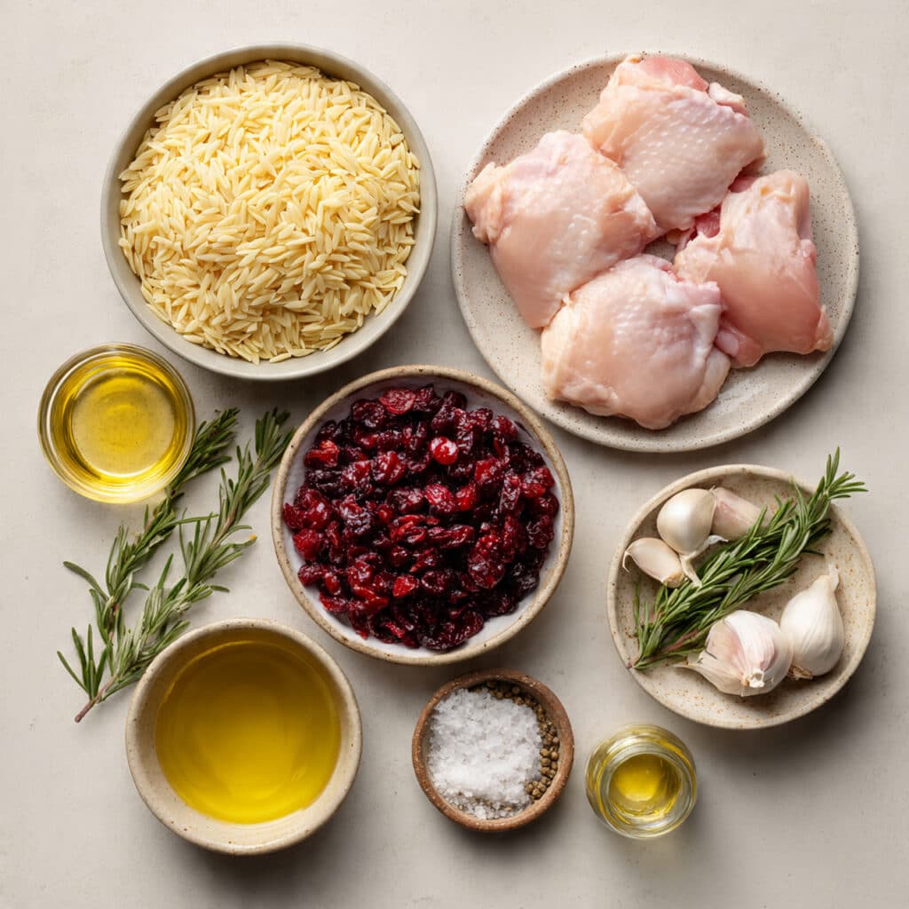 This dish was born on a chilly evening, when I wanted something cozy but also a little special. I had some leftover cranberries from the holidays and a bundle of rosemary that had been perfuming my kitchen for days. Add to that a pack of chicken thighs and orzo from the pantry, and this skillet meal practically made itself. It’s become one of those go-to comfort meals that feels festive enough for guests but easy enough for a weeknight dinner.
