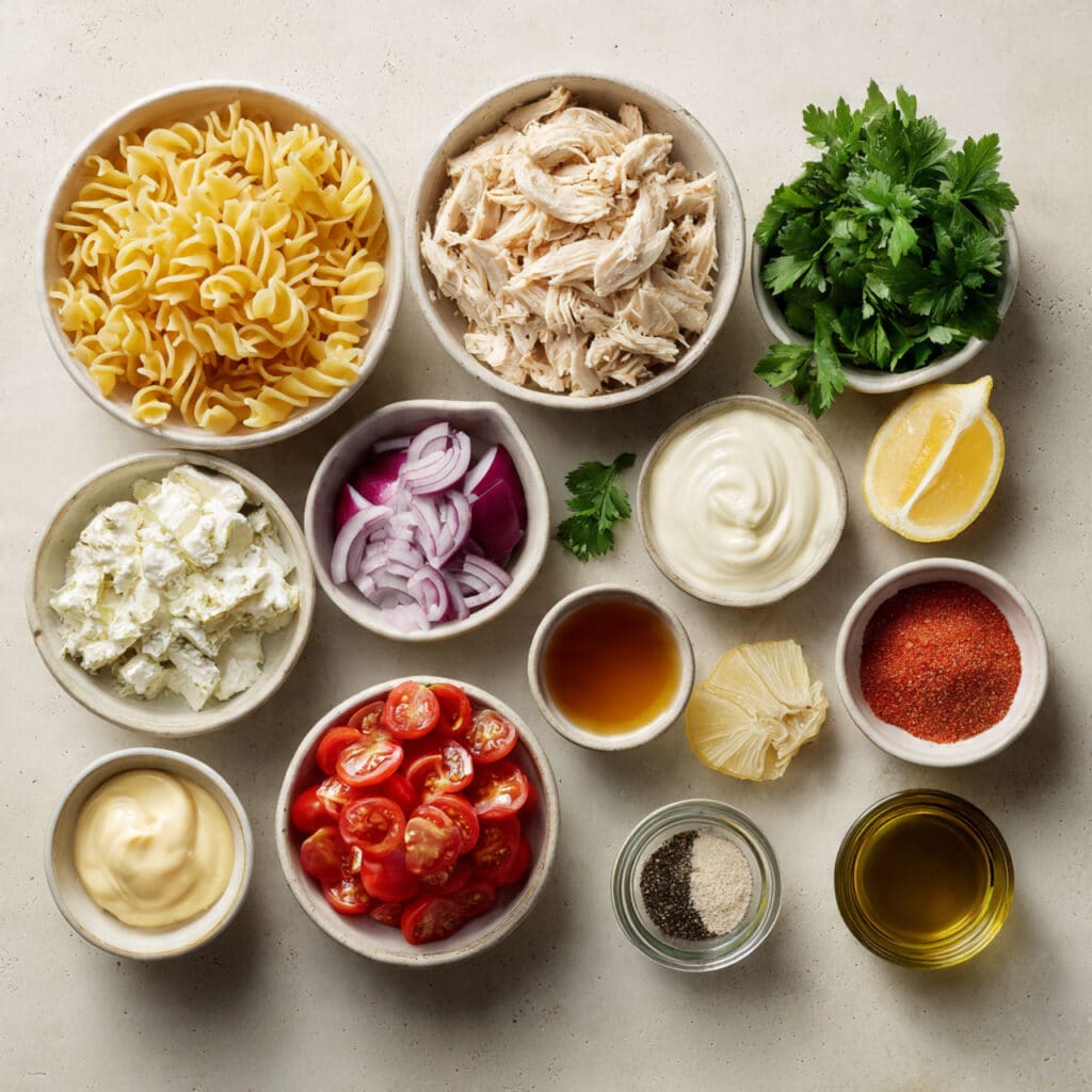 Ingredients in Creamy Chicken Pasta Salad