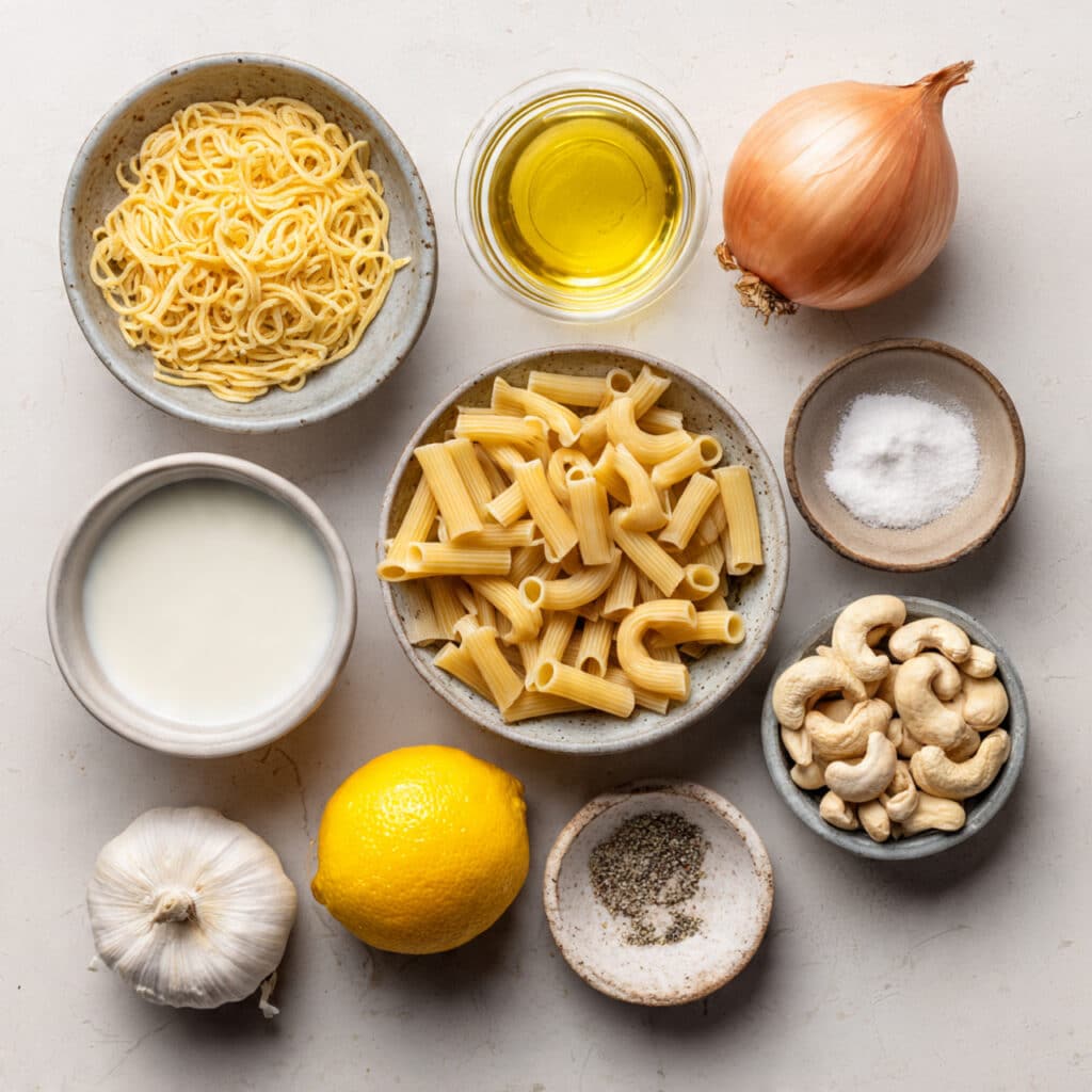 Ingredients in Creamy Vegan Caramelized Onion Pasta