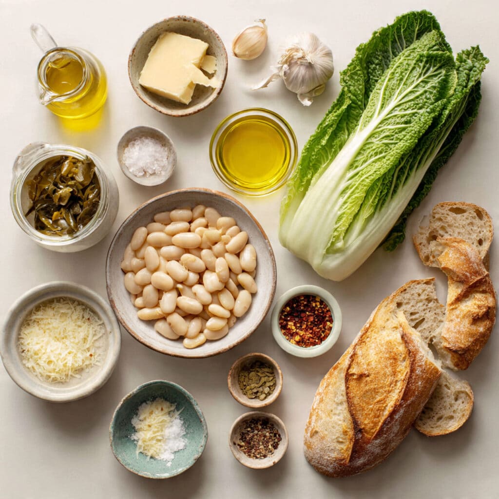- Escarole: 1 large head, chopped. Adds a slight bitterness that balances the beans.