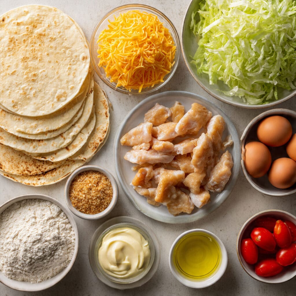 Crispy chicken tenders, fresh veggies, and creamy sauce all wrapped in a warm toasted tortilla for the ultimate crunchy, juicy, and cheesy bite.