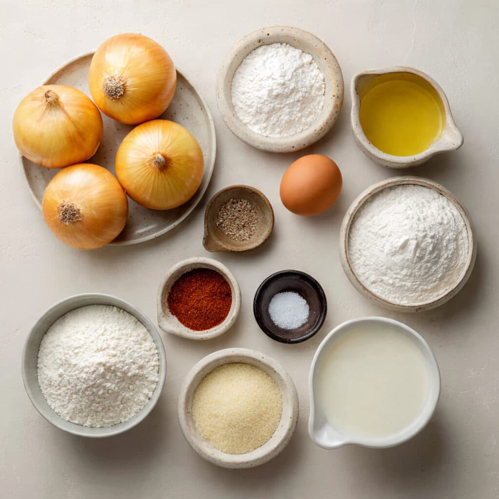 - Large Yellow Onions: 2-3 medium onions, sliced into thick rings – These are naturally sweet and ideal for frying.