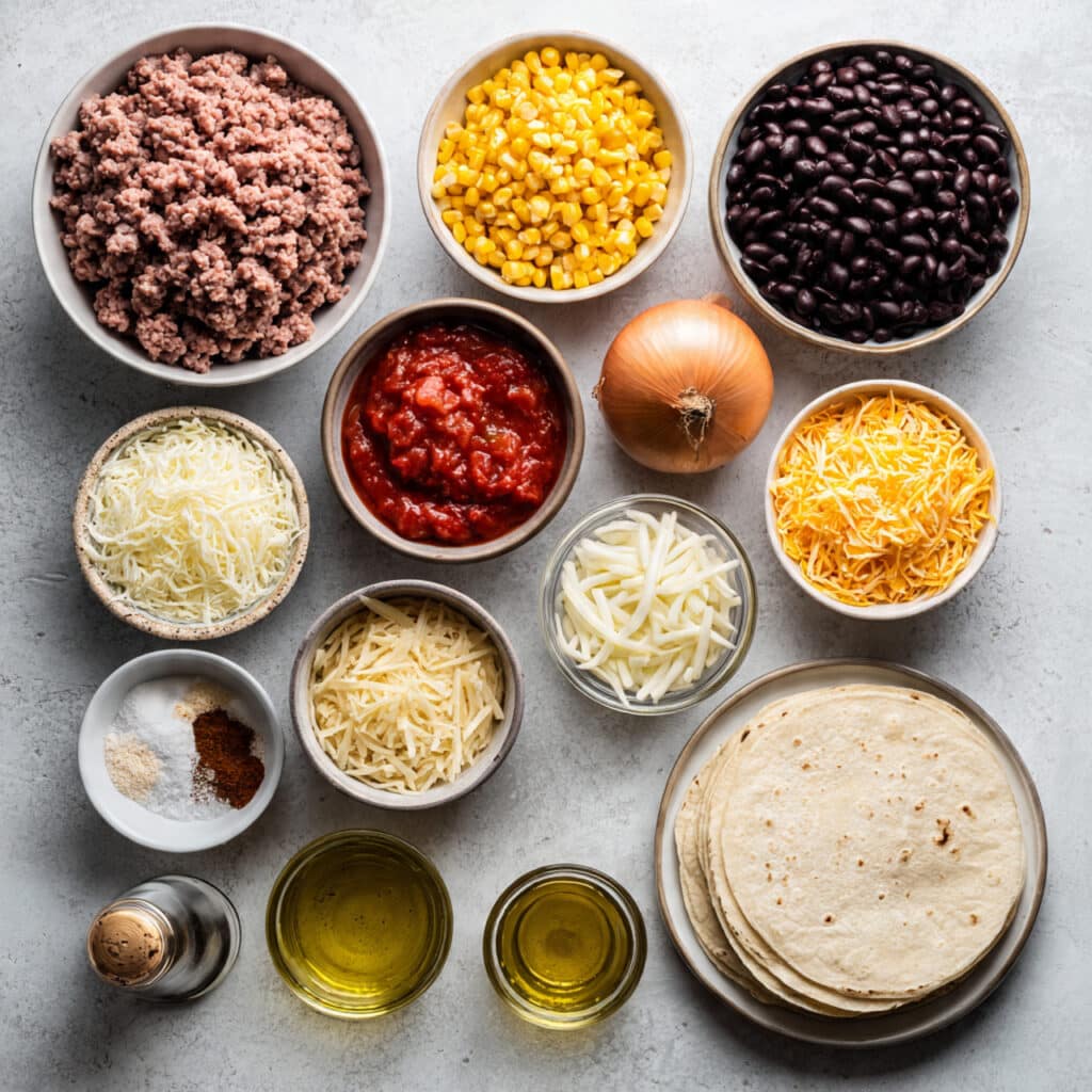 - Flour Tortillas: 6 medium, cut into halves or quarters – Acts like lasagna sheets, giving structure and softness.