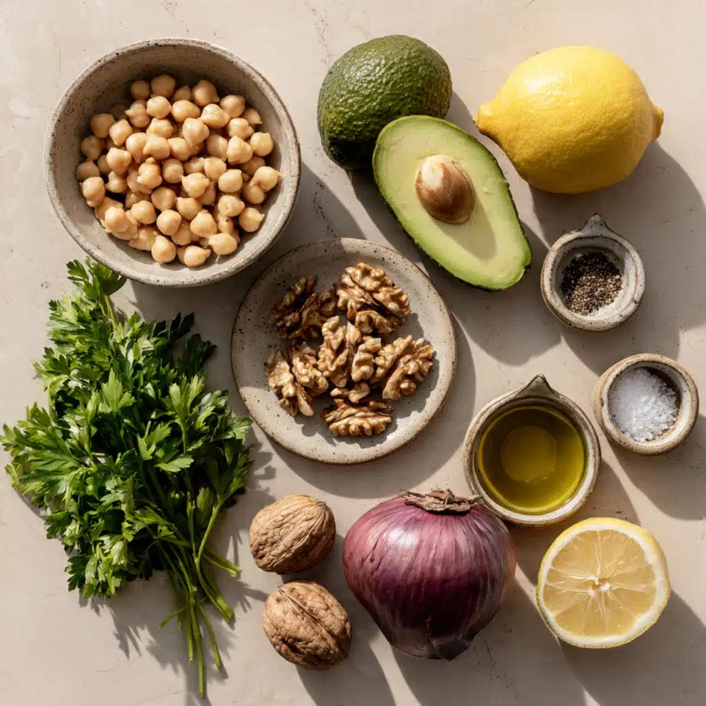 - Chickpeas: 2 cups canned chickpeas, drained and rinsed, these form the hearty base.