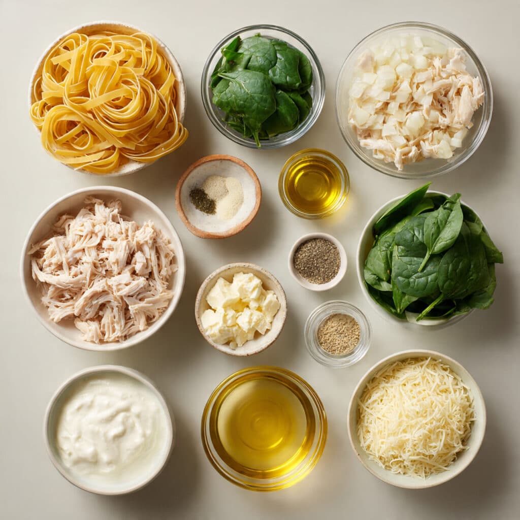 What makes this dish so irresistible is the contrast in textures. The noodles are tender yet slightly chewy, the chicken is juicy, and the broth is smooth and creamy. As the cheeses melt, they create a rich base that clings gently to every ingredient. The spinach adds a light freshness that keeps the dish from feeling too heavy.