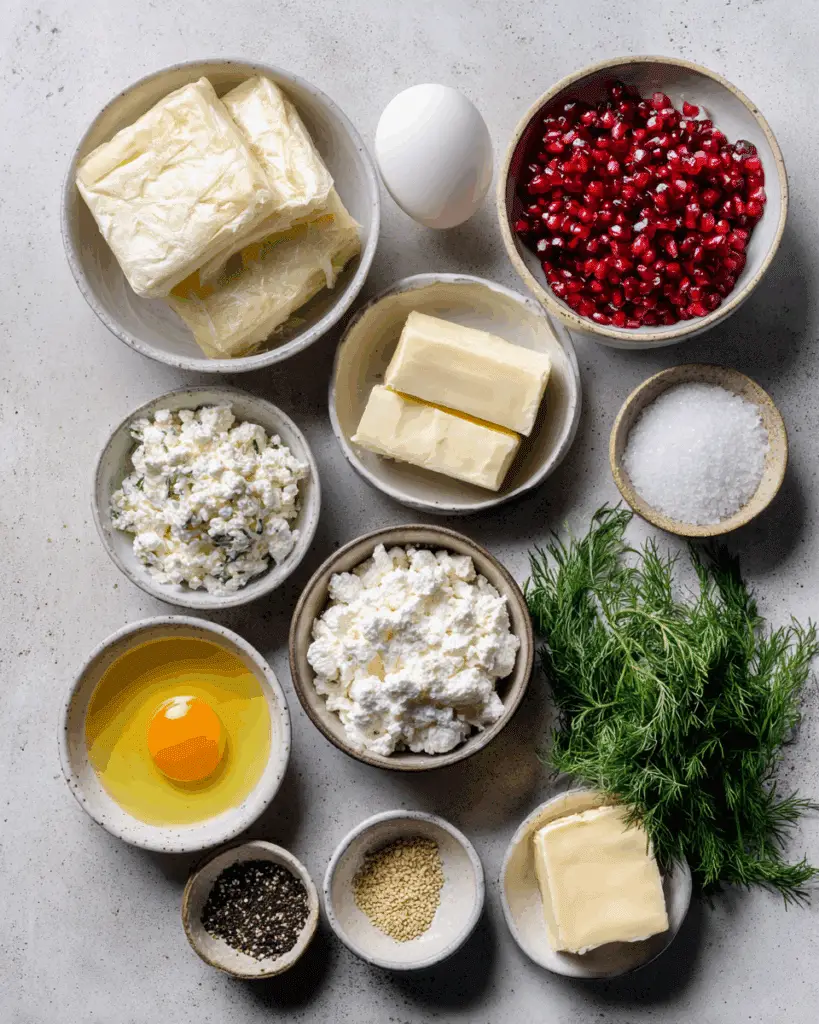 Feta Cheese: This brined white cheese from Greece is known for its crumbly texture and bold flavor. It adds a salty tang that balances beautifully with the buttery phyllo.