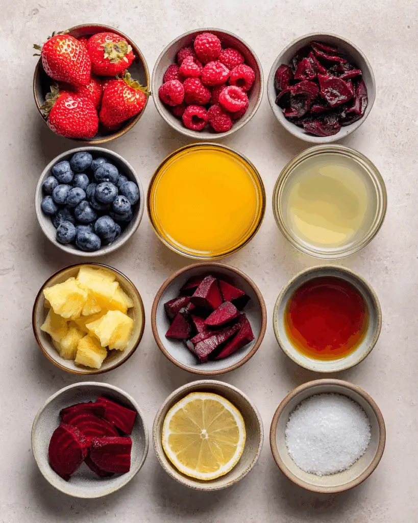 This vibrant mix balances sweetness, tartness, and depth. Here’s the lineup: