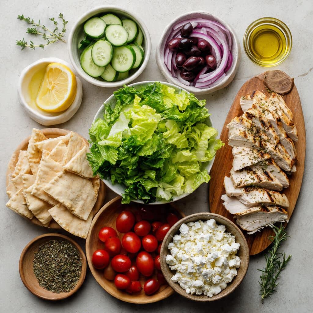 This salad pulls its spirit from classic Greek cuisine, known for its fresh, bold flavors and simple, nourishing ingredients. It’s inspired by the traditional Greek salad, or “horiatiki,” which skips the lettuce and focuses on tomato, cucumber, olives, and feta. But this version adds a modern twist with grilled chicken and crunchy pita to make it heartier and more meal-worthy. While not an authentic Greek dish, it pays delicious homage to those Mediterranean flavors we all crave.