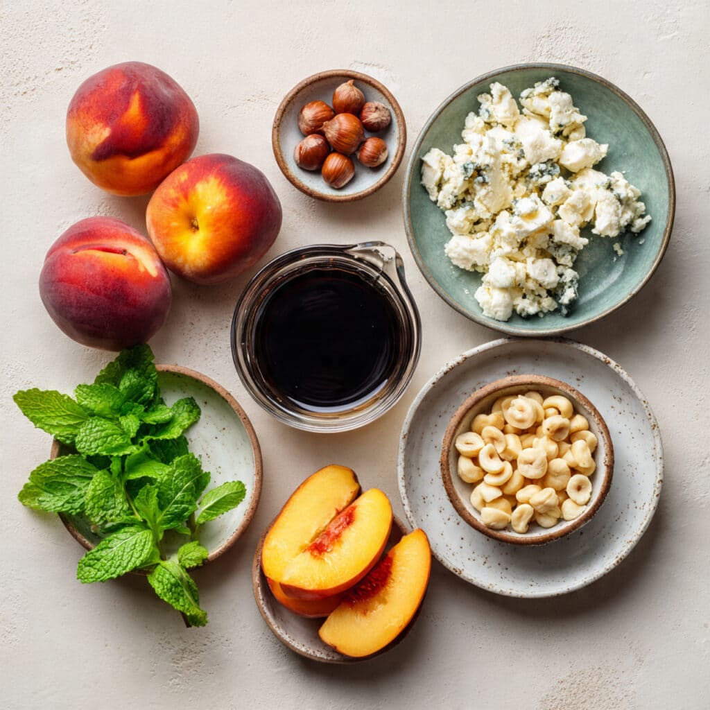 The magic here lies in the contrasts — the warm, caramelized flesh of the grilled nectarines against the creamy, salty gorgonzola creates a luxurious mouthfeel. The crunchy hazelnuts add a satisfying bite, while the honey and balsamic lend layers of sweetness and acidity. Mint brightens the dish, keeping it from feeling too heavy.