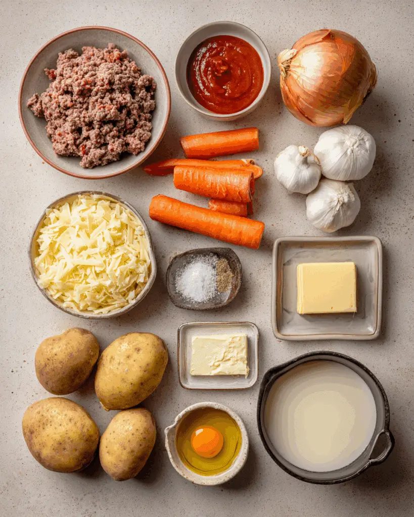 Potatoes: The heart of the dish, potatoes create a creamy, comforting top layer that balances the savory meat. Choose starchy varieties like Russet or Yukon Gold for the fluffiest mash.