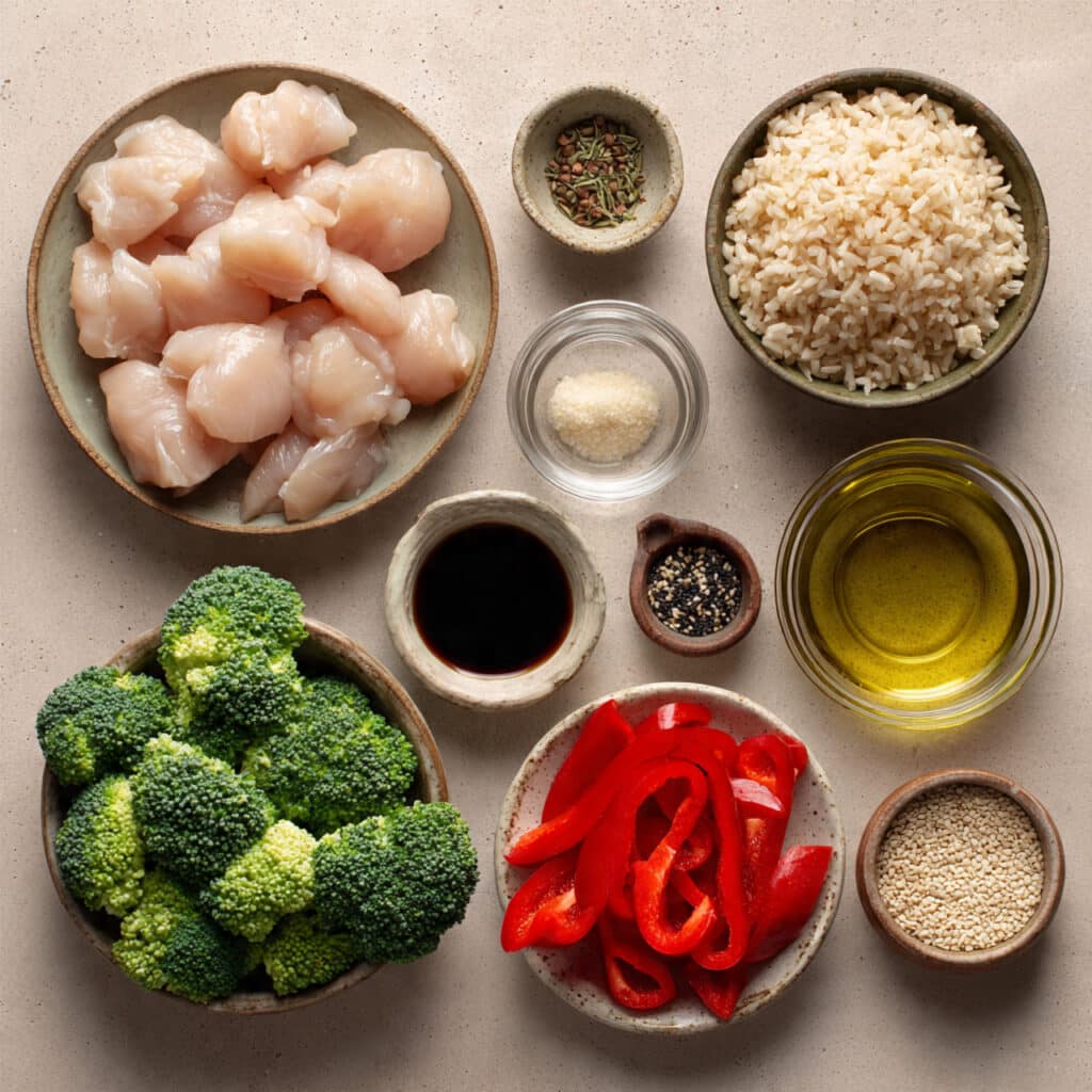 This dish was born out of one of those “what’s in the fridge” nights. I had chicken, broccoli, and rice on hand, and honestly, not much else. But with a splash of soy sauce and a sprinkle of sesame seeds, magic happened. It quickly became a staple in my weekly meal prep rotation — quick to whip up, hearty enough to keep me full, and tasty enough to crave again and again.