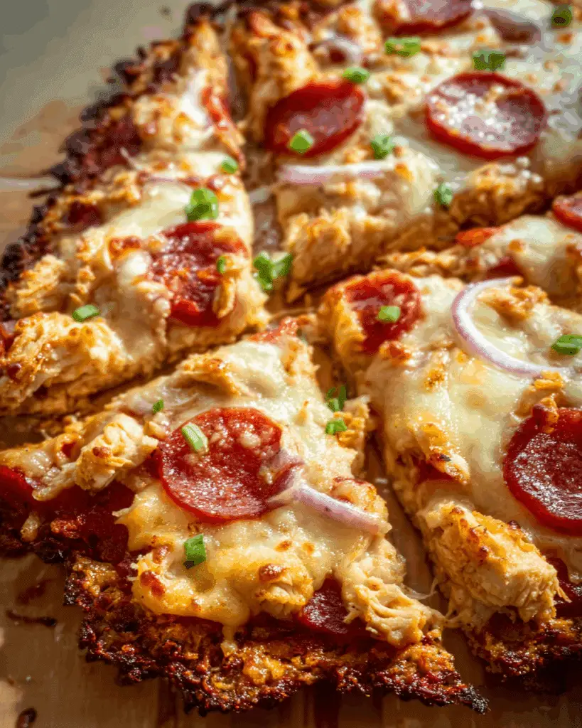 Keywords: chicken crust pizza, high protein pizza, low carb pizza, keto pizza, gluten free pizza