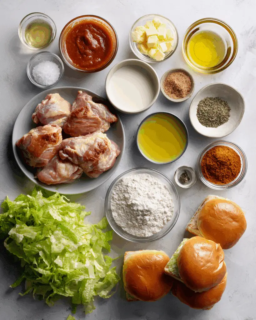 - Boneless Skinless Chicken Thighs: 4 pieces, trimmed and patted dry. Juicy and flavorful base of the sandwich.