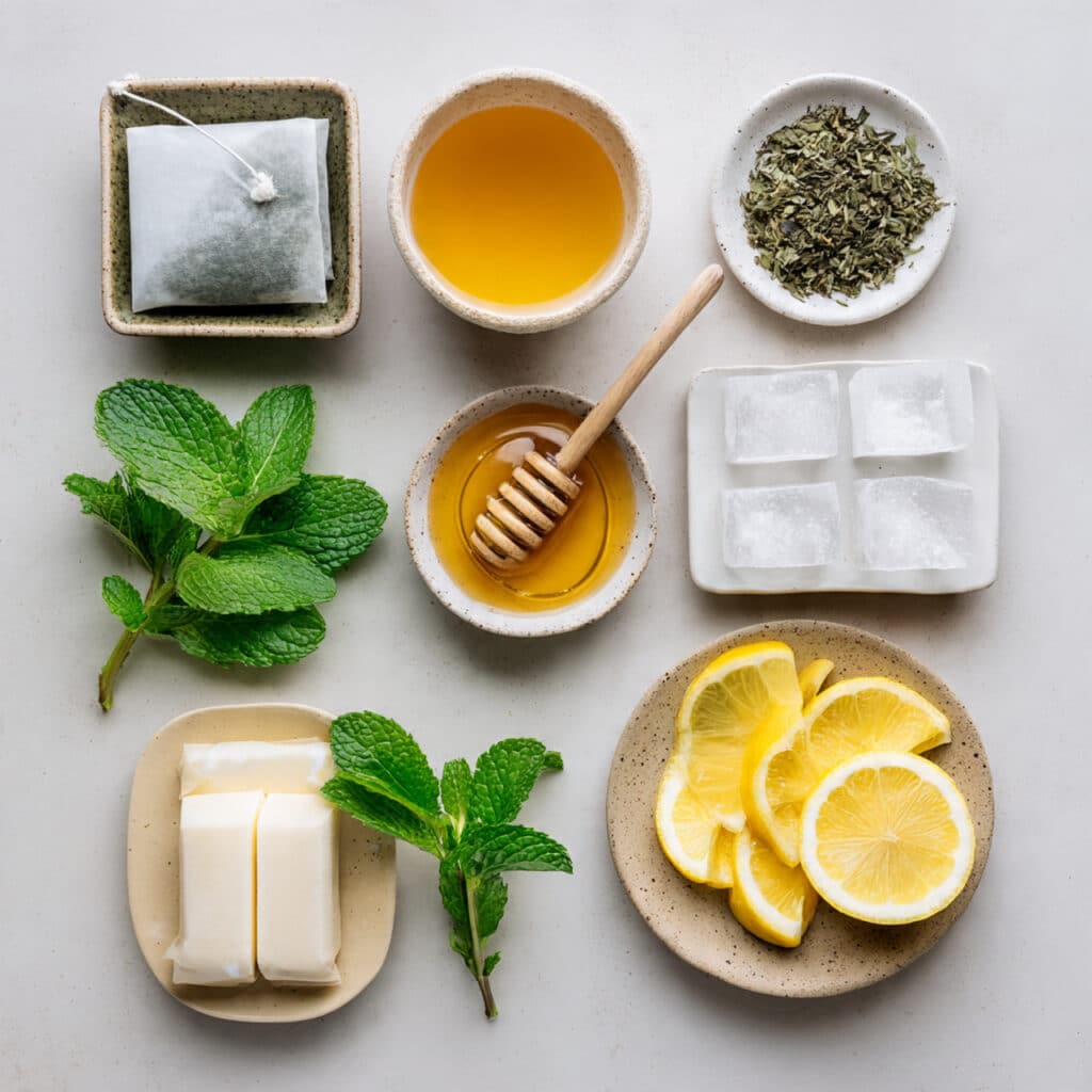 A light and refreshing iced tea made with green tea, fresh mint, honey, and lemon slices. Perfect for hot days, it offers a soothing blend of herbal and citrus notes with a hint of natural sweetness.