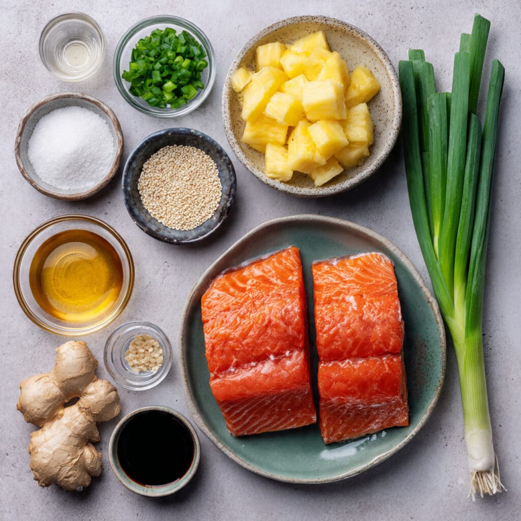 The natural richness of salmon creates the perfect base for a glossy glaze that carries both sweetness and gentle umami. Pineapple adds bursts of juicy freshness that cut through the richness beautifully. Garlic and ginger bring warmth and depth, tying everything together into a dish that tastes layered and exciting.