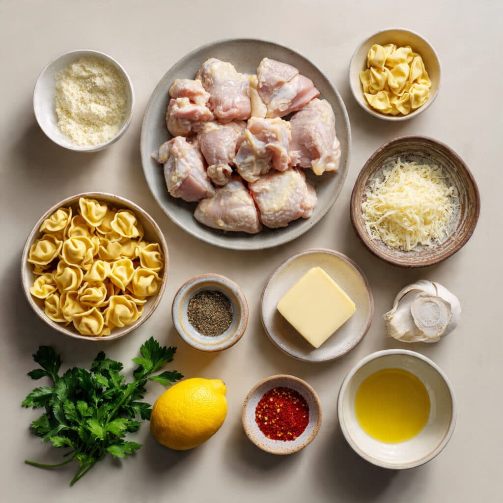 A rich and creamy tortellini dish tossed with juicy chicken and infused with bold garlic butter flavors, finished with herbs and a hint of lemon for balance.