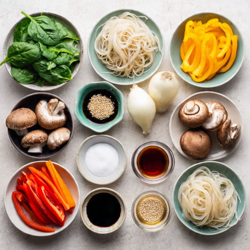 - Assemble the Dish: Add carrots, bell peppers, mushrooms, and spinach separately, cooking each until just tender, then combine with the noodles.