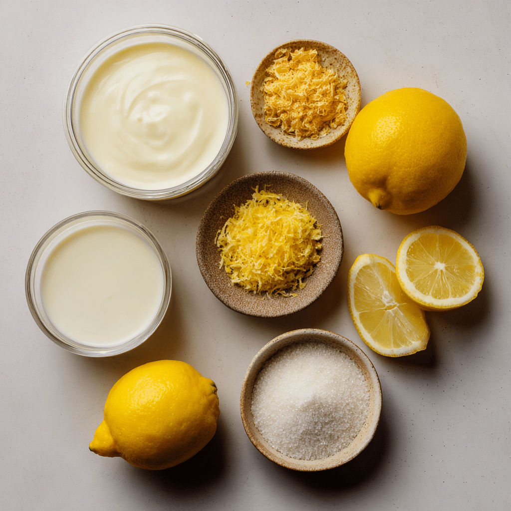 3. Lemon Juice: 75 ml (about 2–3 lemons), the acid that thickens the cream and provides brightness.