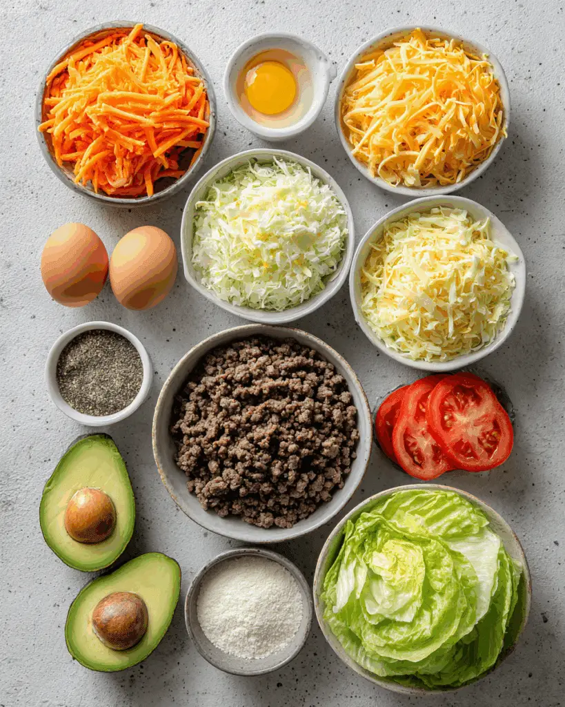 - Carrots: 4 large, shredded — They create the flavorful, crispy buns with natural sweetness and crunch.
