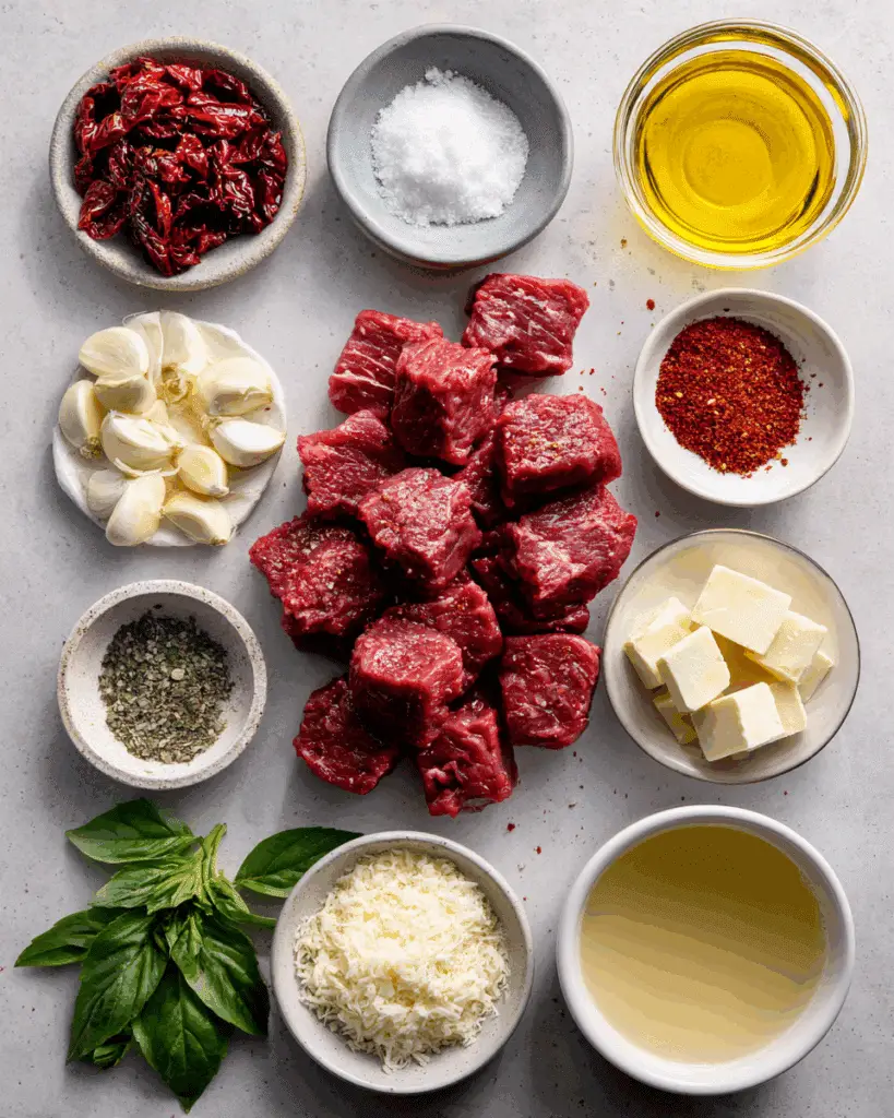 Juicy seared steak bites in a creamy sun-dried tomato parmesan sauce. Rich, comforting, and quick to prepare—perfect for any occasion.