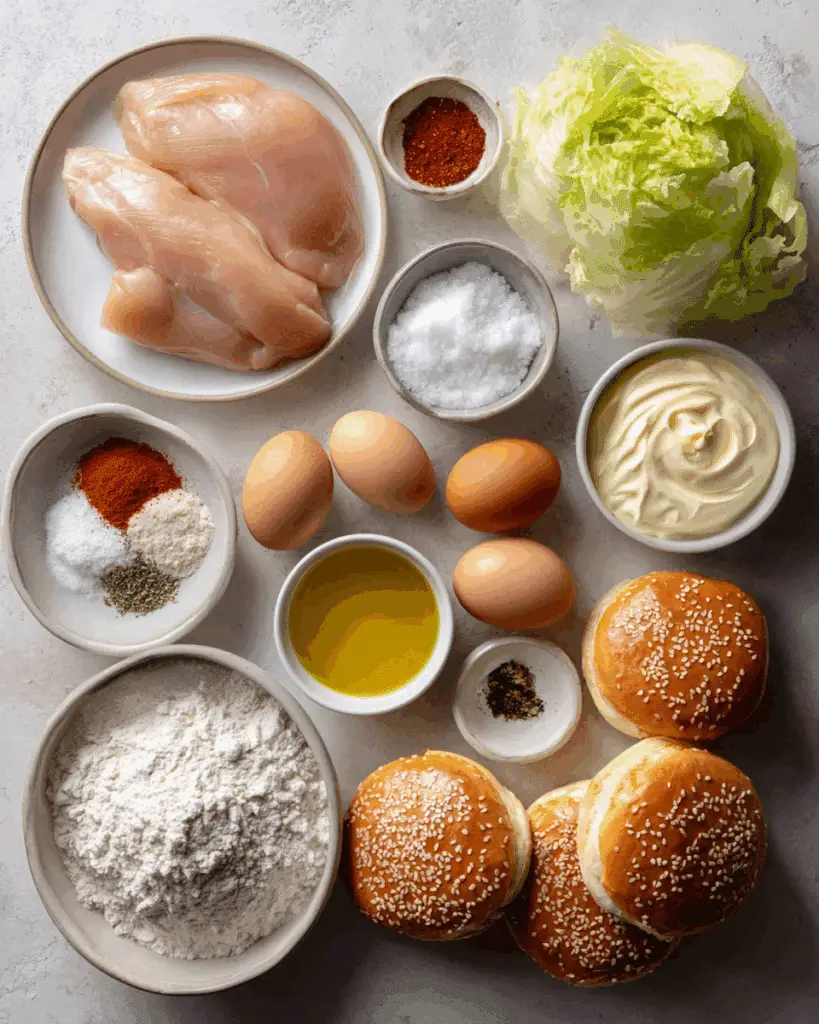 - Chicken Breast Fillets: 2 pieces, boneless and skinless. These form the crispy, juicy core of the sandwich.