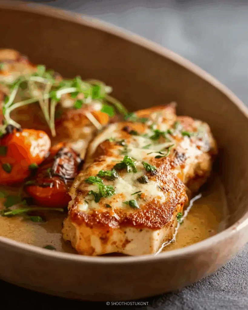 - Serve and Enjoy: Slice into tender, juicy chicken with its golden topping and savor every bite.