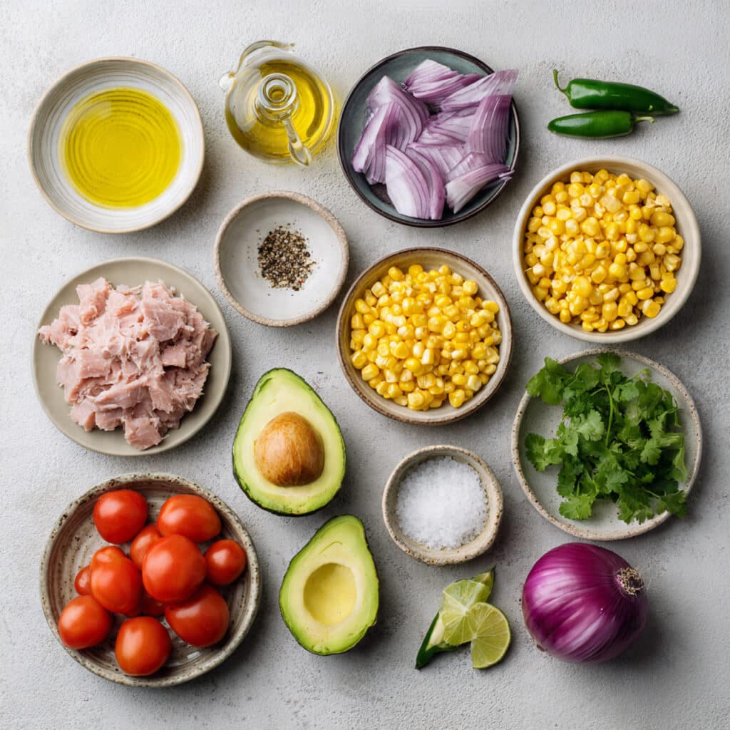 A fresh and flavorful Mexican-inspired tuna salad made with flaky tuna, juicy tomatoes, sweet corn, creamy avocado, red onion, jalapeño, cilantro, and lime. It is quick, colorful, satisfying, and perfect for a light lunch, easy dinner, or make-ahead meal.