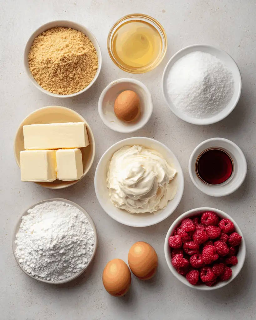 Ingredients in Raspberry and White Chocolate Cheesecake Pie