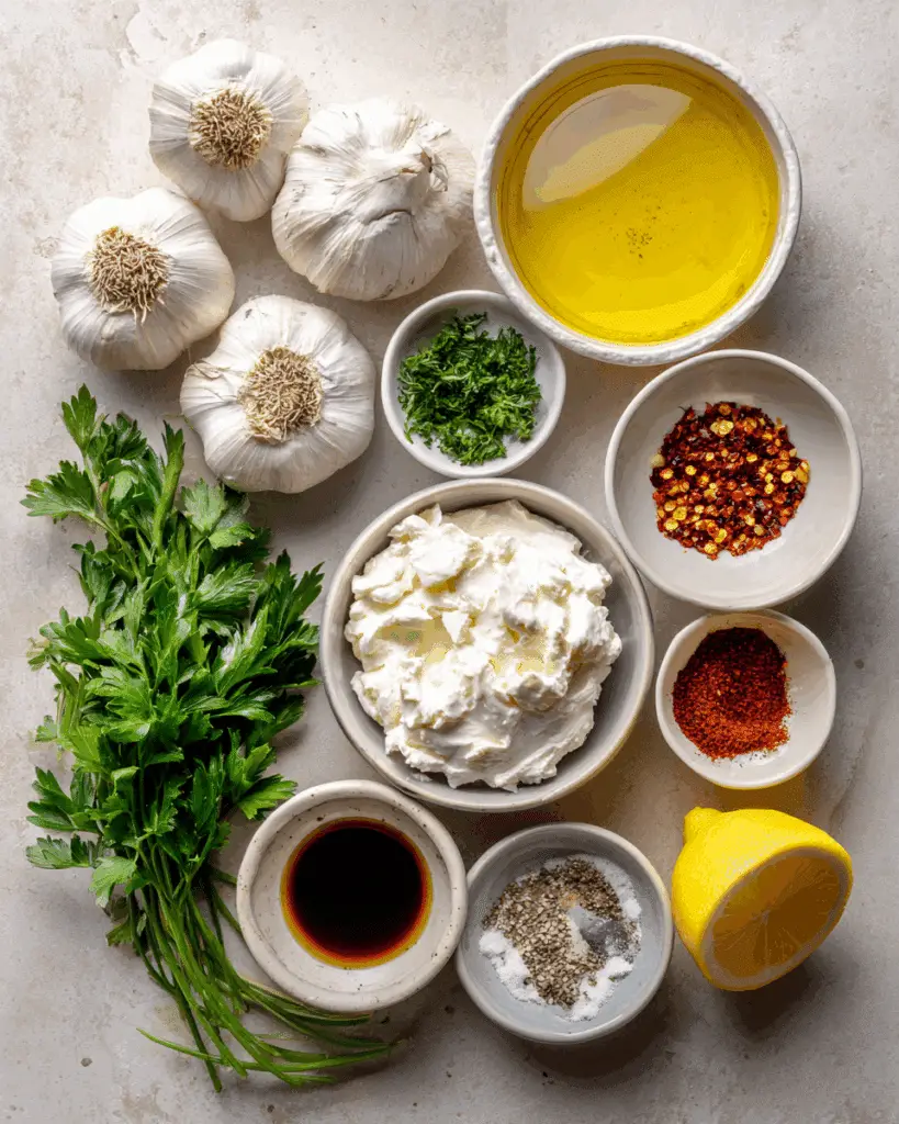 The texture of this dip is silky and whipped, with just enough body to cling to your favorite dippers. The flavor is rich and savory from the garlic, with creamy tang from the yogurt and a slight citrus zing from the lemon juice. A touch of paprika adds warmth, while fresh herbs lift everything into brightness.