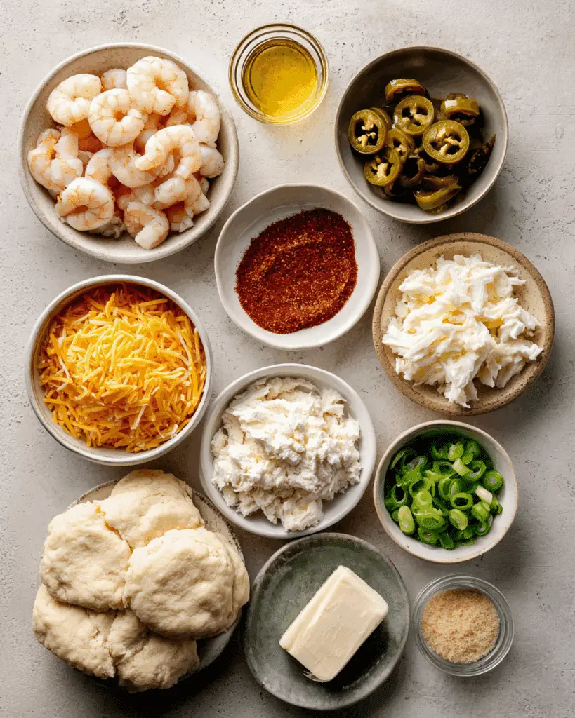 What makes this recipe pop is the contrast between the buttery, crisp biscuit crust and the gooey, rich filling. The shrimp adds bounce, the crab brings sweetness, and the jalapeños give a gentle heat that cuts through the richness. Every bite is creamy, cheesy, and full of satisfying seafood flavor.