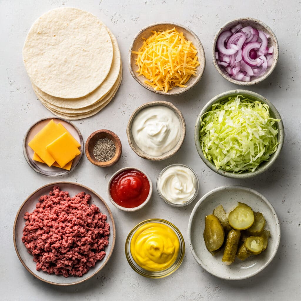 Crispy, juicy Smash Burger Tacos made with seasoned ground beef pressed onto flour tortillas, seared to perfection, layered with melted cheddar, fresh vegetables, and a creamy burger sauce. A bold and fun fusion that brings burger flavor into taco form.