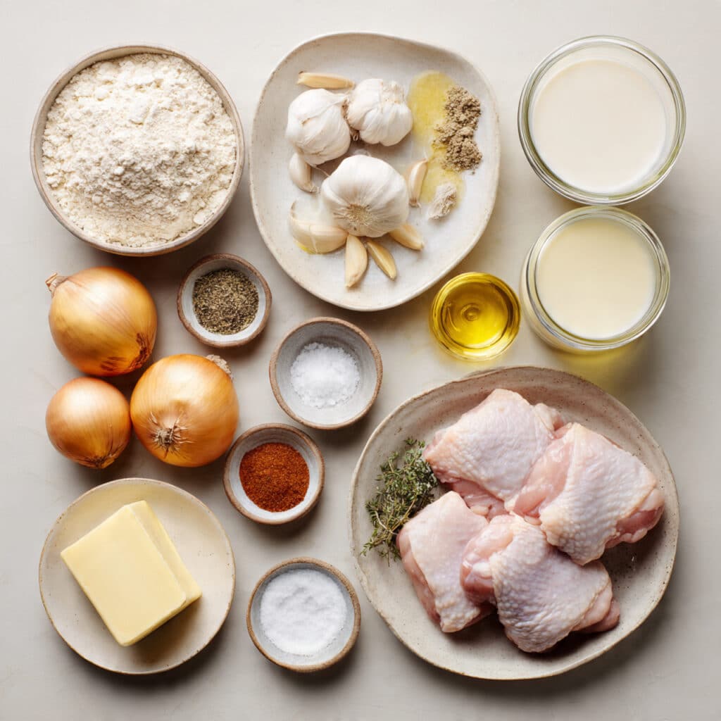 - Cook to Perfection: In the same skillet, melt butter and sauté onions until soft, then add garlic. Stir in remaining flour, then slowly whisk in chicken broth and milk. Return chicken to the pan and simmer until fully cooked and tender.