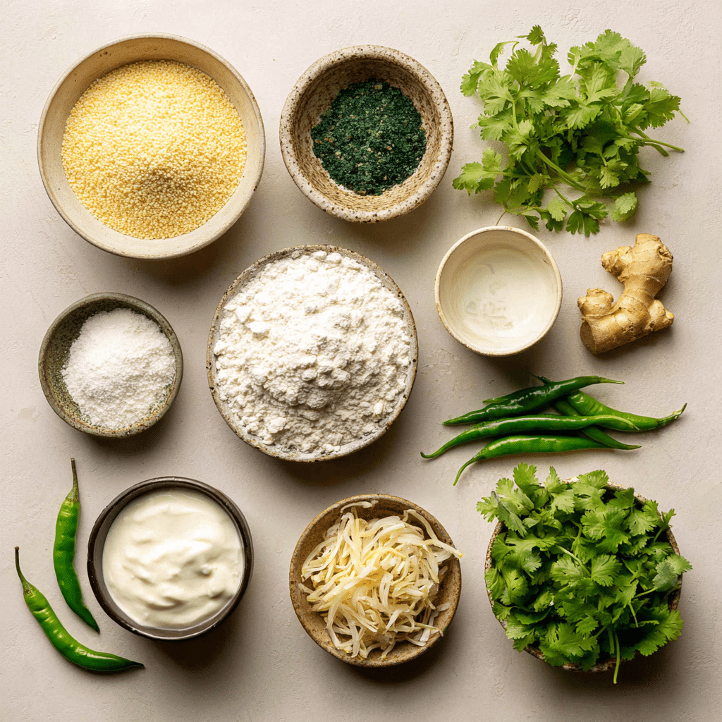 - Curd (Plain Yogurt): ½ cup – Binds the dough and adds tanginess.