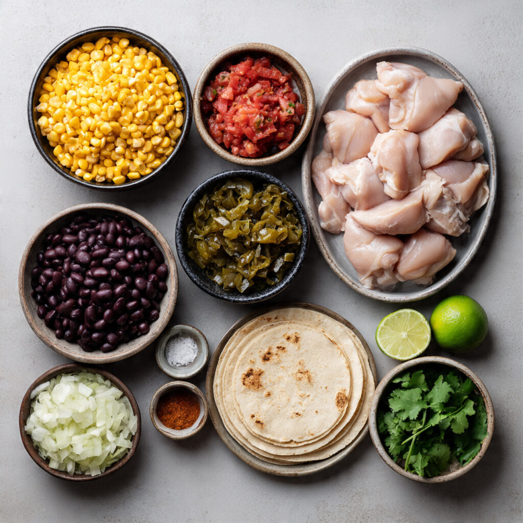 The chicken is juicy and tender, while the beans and corn provide a soft, slightly sweet bite. Tomatoes with green chiles add tang and a touch of heat, and the lime-cilantro combo cuts through the richness for a refreshing finish. It’s a perfect balance of bold and fresh.
